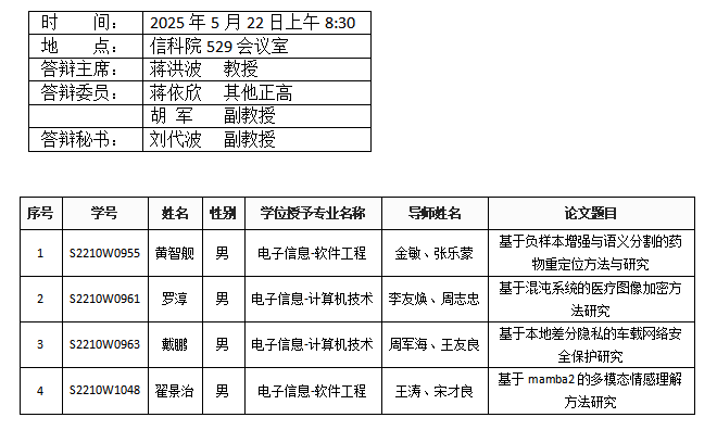 葫芦娃 (软件工程系)2025年5月22日硕士答辩公告(2)