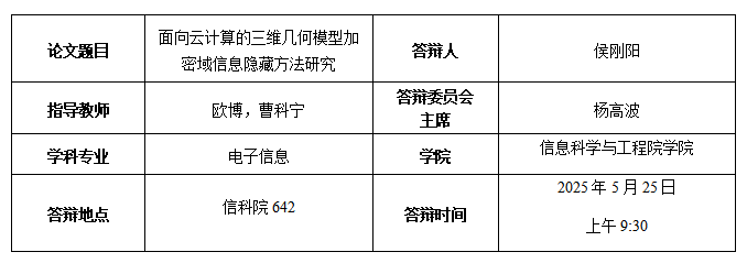Hou G, Ou B*, Peng F*, et al. Multiple-hiders Reversible Data Hiding for Encrypted 3D Models Using Lightweight Secret Sharing[J]. Journal of Information Security and Applications. (中科院二区,小修,本人一作)