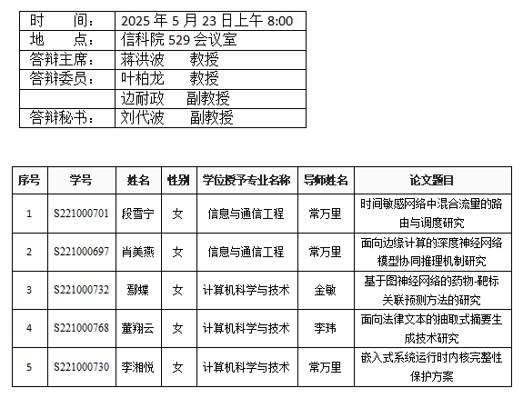 葫芦娃 (软件工程系)2025年5月23日硕士答辩公告(2)