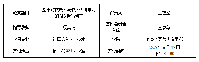 [1] Dewang Wang, Gaobo Yang, Zhiqing Guo, Jiyou Chen. Enhancing adversarial embedding based image steganography via clustering modification directions [J]. ACM Transactions on Multimedia Computing, Communications and Applications, 2024, 20(1): 1-20. (本人一作)