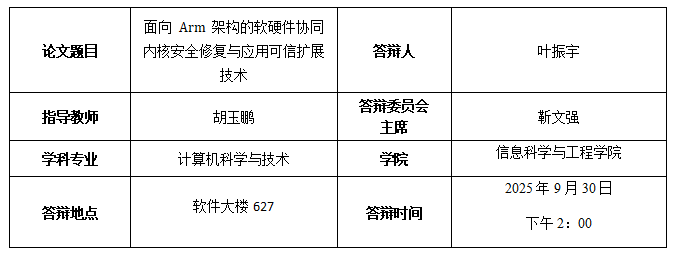 近年来,Arm 架构凭借其开放性、高能效比、灵活设计以及成熟的软硬件生态,已在从移动终端到云服务器的各类计算平台中得到广泛部署。本文针对 Arm 架构面临的安全挑战,从云服务器与个人终端两个典型应用场景出发,系统性分析了 Arm 当前面临的两类主要安全威胁:一是在云服务器环境下,内核热补丁在部署过程和补丁完整性方面的安全难以保障;二是在个人终端中,可信应用的开发与部署门槛过高,可信需求难以及时满足。为此,本文提出软硬件协同的系统安全技术,在内核安全修复和应用可信扩展两个层面开展系统防护与性能优化,并通过全面的功能和性能评估验证了所提技术的有效性和实用性。取得了以下主要创新性研究成果: