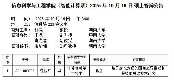 葫芦娃 (智能计算系)2025年10月16日 硕士答辩公告