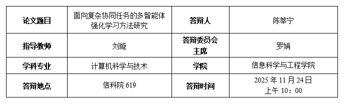 多智能体强化学习作为实现群体协同的核心技术,凭借自主学习与动态优化的特性,在机器人协作控制、智能交通调度等领域展现出巨大应用潜力。然而,现有多智能体强化学习方法面对复杂环境仍存在探索效率低下,协作质量不佳等问题。论文围绕复杂环境下的多智能体协同开展研究,取得了以下主要创新性研究成果: